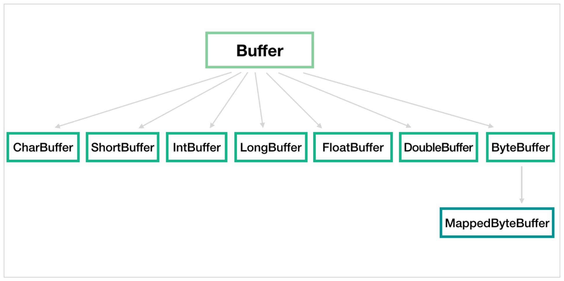 我们应该将 Buffer 理解为一个数组,IntBuffer、CharBuffer、DoubleBuffer 等分别对应 int[]、char[]、double[] 等。