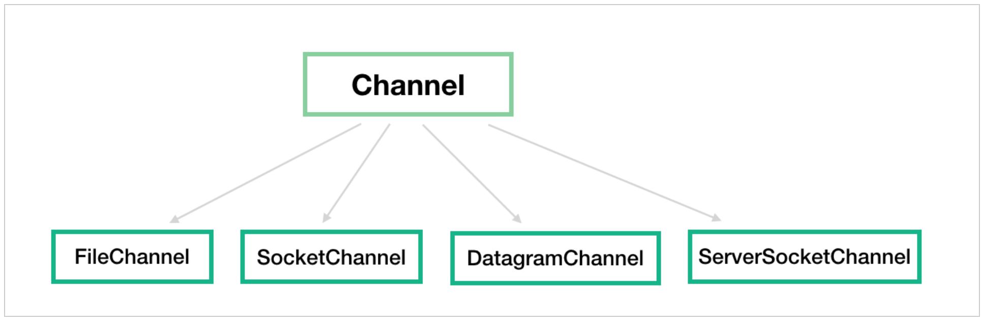 所有的 NIO 操作始于通道,通道是数据来源或数据写入的目的地,主要地,我们将关心 java.nio 包中实现的以下几个 Channel: